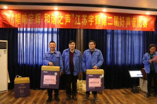 為營造昂揚(yáng)向上、和諧奮進(jìn)的濃厚氛圍,凝聚企業(yè)發(fā)展正能量,2021年1月2日下午,江蘇宇輝工會(huì)在公司活動(dòng)室舉辦"唱響宇輝 和諧之聲"江蘇宇輝第二屆好聲音比賽。來自公司各部門的的20多名員工紛紛登臺(tái)獻(xiàn)唱,為廣大員工獻(xiàn)上了一場藝術(shù)盛宴。江蘇宇輝董事長兼總經(jīng)理全文林,工會(huì)副主席、常務(wù)副總經(jīng)理潘亞平,副總經(jīng)理兼總工程師吳仲勤擔(dān)任評委。