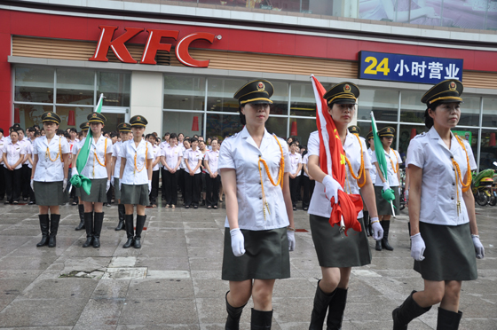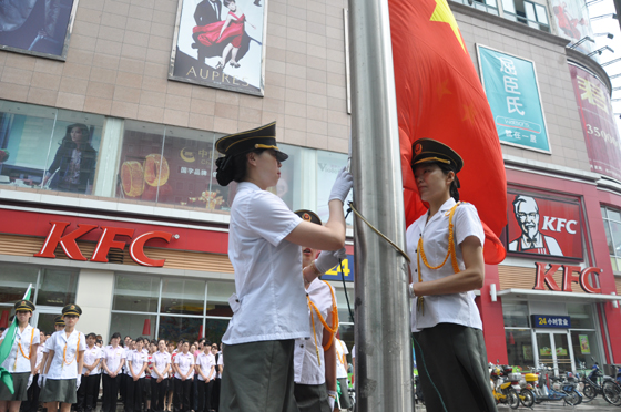 2011年7月1日是黨90歲的生日,是值得慶賀的日子。早晨,當(dāng)?shù)谝豢|陽(yáng)光照耀著錦宸百貨,全體員工身著整齊的工裝以激動(dòng)的心情觀看升旗儀式。迎著朝陽(yáng),國(guó)旗班的升旗手們護(hù)衛(wèi)著鮮艷的五星紅旗入場(chǎng),伴隨著《義勇軍進(jìn)行曲》的響起,五星紅旗冉冉升起,大家集體行注目禮,莊嚴(yán)肅穆,此時(shí)此刻驕傲和自豪充滿(mǎn)每個(gè)人的心田。