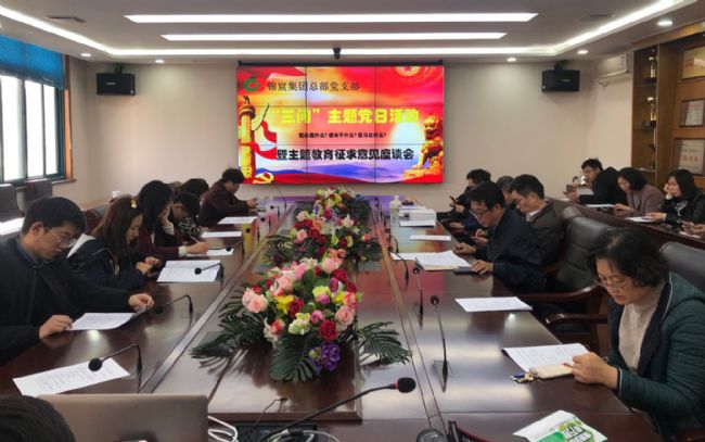 11月21日下午,錦宸集團總部支部開展“三問”主題黨日活動暨“不忘初心、牢記使命”主題教育征求意見座談會,集團公司總部支部黨員、總部職工參會。