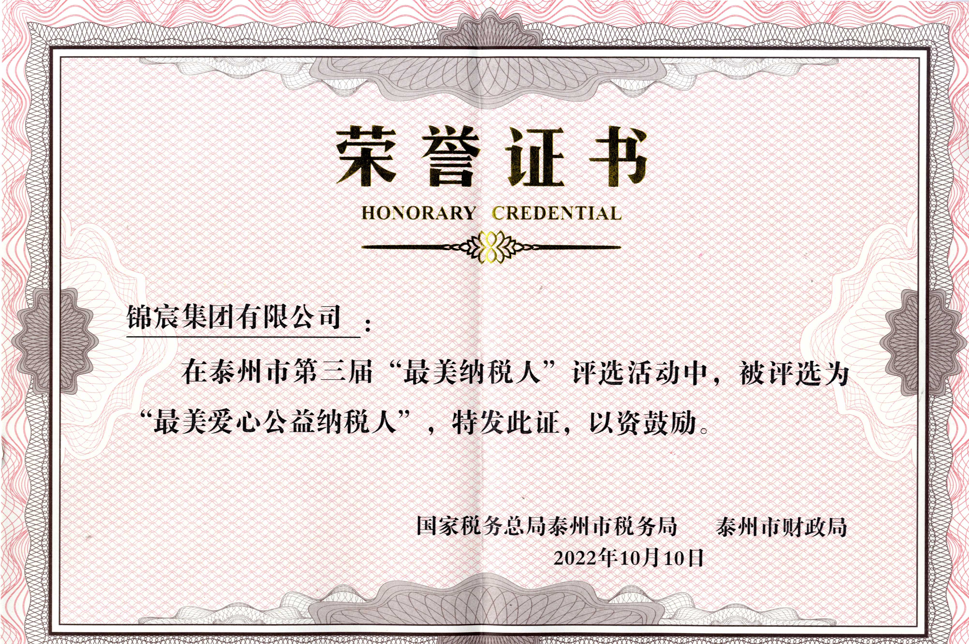 經(jīng)推薦申報、審核初選、公眾投票、專家評審和媒體公示等嚴格程序,此次活動共評選出30名“最美納稅人”,分別授予“最美來泰投資納稅人”“最美愛心公益納稅人”“最美創(chuàng)業(yè)富民納稅人”“最美專精特新納稅人”“最美稅收貢獻納稅人”稱號。錦宸集團榮獲“最美愛心公益納稅人”稱號。
