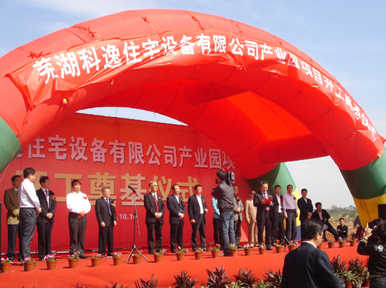 10月16日,由蘇州科逸住宅設(shè)備股份有限公司投資,集團(tuán)公司承建的蕪湖科逸住宅設(shè)備產(chǎn)業(yè)園一期項(xiàng)目在新蕪經(jīng)濟(jì)開(kāi)發(fā)區(qū)奠基開(kāi)工。第十屆全國(guó)政協(xié)委員、中國(guó)建筑材料聯(lián)合會(huì)四屆十一次理事會(huì)會(huì)長(zhǎng)張為人,中國(guó)住建部住宅產(chǎn)業(yè)發(fā)展中心產(chǎn)業(yè)發(fā)展處處長(zhǎng)劉美霞,安徽省住建廳房地產(chǎn)市場(chǎng)監(jiān)管處處長(zhǎng)張啟兵,中國(guó)建材報(bào)原社長(zhǎng)溫世庭,蕪湖縣四套班子領(lǐng)導(dǎo)何友旺、黃維群、胡懷剛、夏正木,科逸高層陳忠義、陳兆忠、黃旭升、胡福濤以及錦宸集團(tuán)有限公司相關(guān)領(lǐng)導(dǎo)出席開(kāi)工儀式,并奠基培土。