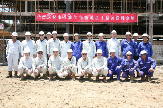 乍得基地工程項(xiàng)目開工以來,特別是在進(jìn)入雨季之后,建設(shè)單位、設(shè)計(jì)單位、監(jiān)理單位、施工單位及其他相關(guān)部門共同努力,克服了種種不利條件,圓滿完成了乙方公寓樓主體結(jié)構(gòu)的封頂,中石油乍得基地的建設(shè)取得了階段性的成果。