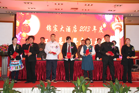 會(huì)上酒店對(duì)2013年度的優(yōu)秀員工進(jìn)行了表彰。酒店副總經(jīng)理張躍琴作了2013年度工作報(bào)告,總結(jié)過(guò)去,計(jì)劃未來(lái)。隨后,集團(tuán)公司黨委書(shū)記王春林同志對(duì)酒店發(fā)展提出了新的要求,他期望酒店在新的一年里,要圍繞“提升業(yè)務(wù)水平、完善制度建設(shè)、發(fā)展餐飲特色、加強(qiáng)能源管理、轉(zhuǎn)變營(yíng)銷(xiāo)思路、抓牢安全工作”等六個(gè)方面,實(shí)行精細(xì)管理,扎實(shí)練好內(nèi)功,努力打造具有“錦宸”特色的餐飲企業(yè)。