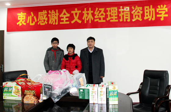 3月4號上午,集團(tuán)公司華東區(qū)域(臨時)黨支部書記全文林同志踐行“學(xué)雷鋒”行動,以個人名義前往民興中學(xué)看望貧困學(xué)生葛亞萍、范洪林,并到張甸鎮(zhèn)楊港村慰問孤寡殘疾老人穆同喜,為他們送去了慰問金和慰問品。