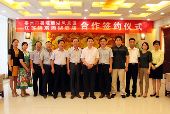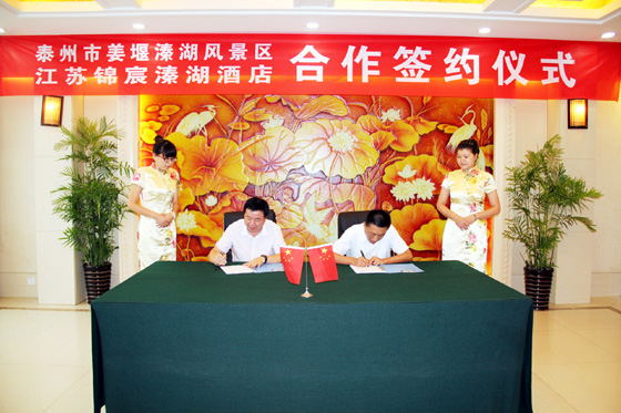 簽約儀式上,溱湖風(fēng)景區(qū)開(kāi)發(fā)建設(shè)有限公司王劍經(jīng)理,錦宸集團(tuán)有限公司、江蘇錦宸溱湖酒店有限公司董事長(zhǎng)李煥軍分別代表雙方在合作協(xié)議書(shū)上簽字。這標(biāo)志著江蘇錦宸溱湖酒店正式入駐風(fēng)景區(qū)。