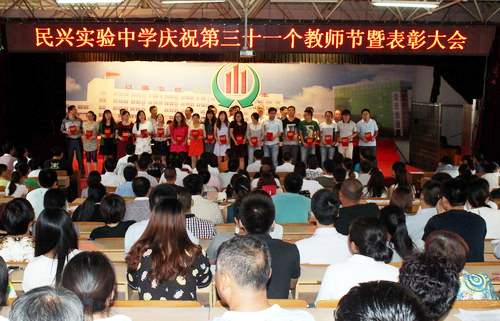9月9日下午,民興中學(xué)隆重舉行第31個教師節(jié)表彰大會,對20個先進(jìn)集體、137名先進(jìn)個人進(jìn)行了表彰。民興中學(xué)董事長李煥軍,校長曹福春,以及董事會成員、各部執(zhí)行校長、各教學(xué)部各部門代表、學(xué)生代表,參加了大會。副校長王鵬主持了會議。